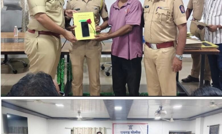 खोपोली पोलिस ठाणे हद्दीत गेल्या काही महिन्यांपासून नागरिकांनी हरवलेले मोबाईल फोन शोधण्यात उल्लेखनीय यश मिळवून पोलिसांनी जनतेचा विश्वास पुन्हा एकदा जिंकला आहे. अत्याधुनिक CEIR (Central Equipment Identity Register) या प्रणालीचा प्रभावी वापर करून पोलिसांनी एकूण २२ मोबाईल फोन, ज्यांची एकत्रित किंमत ₹3,69,300, शोधून काढले असून ते त्यांच्या मूळ मालकांच्या ताब्यात सुपूर्द करण्यात आले आहेत.