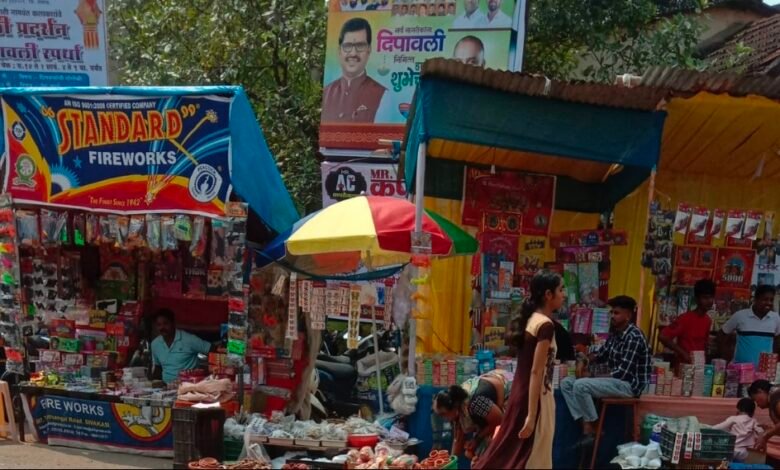 नियमा विरोधात व विनापरवाना एक एक ठिकाणी आठ ते दहा स्टॉल लागलेले आहे याला कुठलीही रीतसर परवानगी न घेता देणारे दूकानदाराने पोलिस आणि नगरपरिषद यांच्याशी आर्थिक हातमिळवणी करून प्रशासनाचे नियम धाब्यावर बसवून राजरोसपणे फटाके सारखे (स्फोटक) पदार्थांचे स्टाॅल रस्त्यावर मांडलेले आहे.