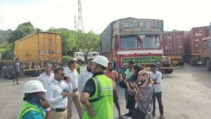 नवकार (प्रिती)CFS यार्ड येथील ट्रेलर मुळे प्रचंड वाहतूक कोंडी ; भर रस्त्यावर शेकडो ट्रक